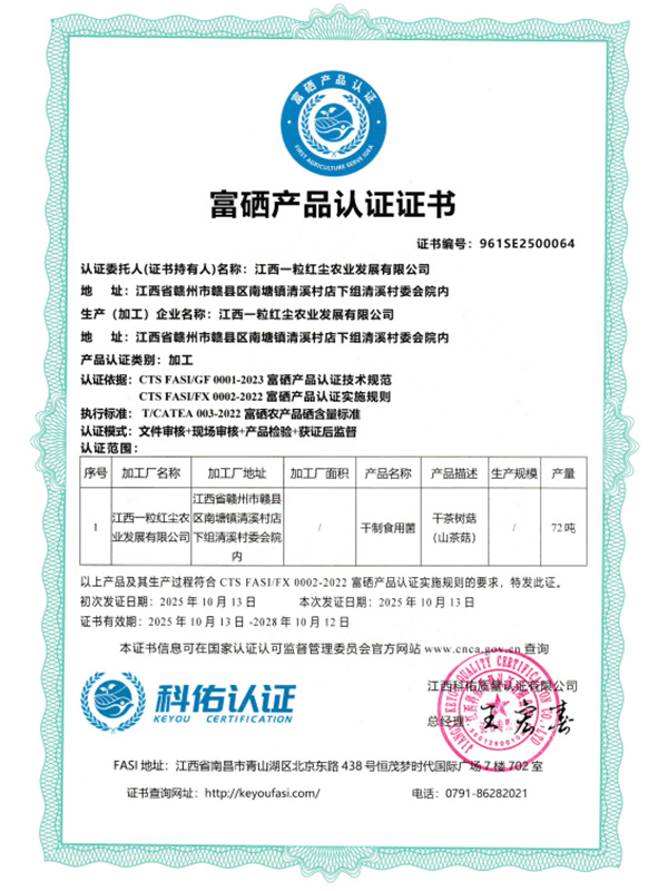 江西一粒紅塵農業發展有限公司是一家總部位于江西省贛縣的現代農業多元型企業,專注于食用菌的研發種植深加工貿易研教培農文旅等全產業鏈發展。公司秉承“健康綠色共享共贏”的核心價值觀,致力于引領鄉村振興之路,旨在成為......